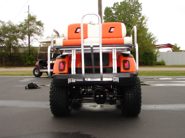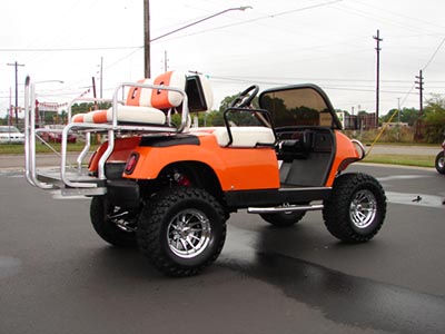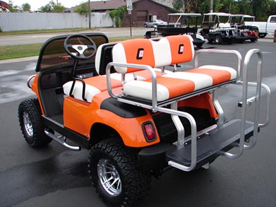 This is a cart that we built for a customer here in Michigan. It has custom paint, custom seats with his logo, V-Twin kit and a lot more.