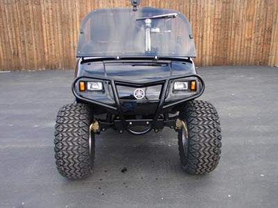 This is a street legal cart that Don built for himself. It has custom paint, auto meter gauges, V-Twin kit, gears, over drive clutches and a lot more. Don drives this cart back and forth to work in the summer. It gets fifty miles to the gallon and will roll out at 60 mph.